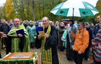 Воссоединение двух групп произошло в деревне Морозово, у часовни в честь Собора Радонежских святых. Под звон небольших колоколов духовенство и паломников встречал настоятель прихода протоиерей Виктор Григоренко. На фундаменте возводимого храма «Всех Радонежских святых» был отслужен молебен с чтением Евангелия.