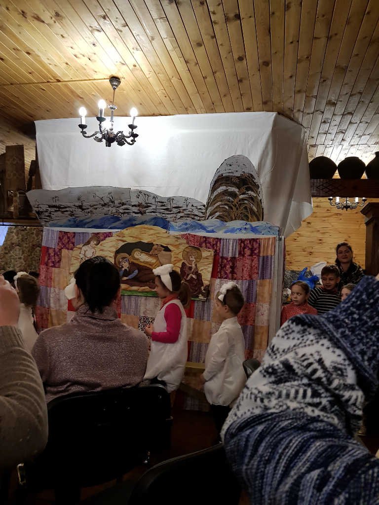 Родители и молодёжь прихода подготовили праздничный сюрприз детям – «театр теней». Фигуры, декорации и ширма были самостоятельно сделаны силами родителей и активной молодежи прихода. Спектакль был посвящен Рождеству и описывал важные события рождения Спасителя.